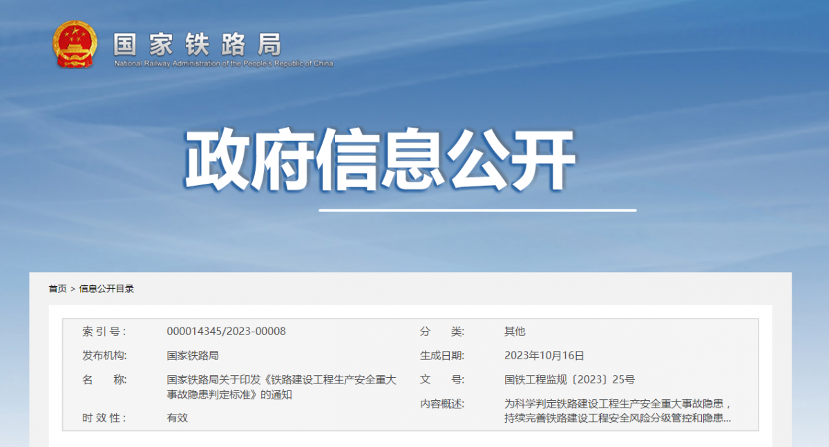 国家铁路局关于印发《铁路建设工程生产安全重大事故隐患判定标准》的通知