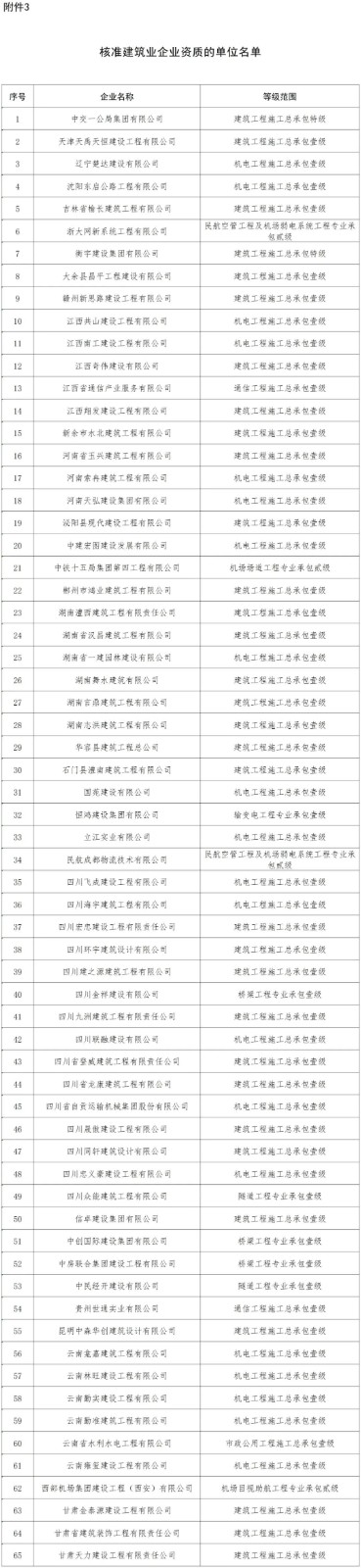 3.核准建筑业企业资质的单位名单