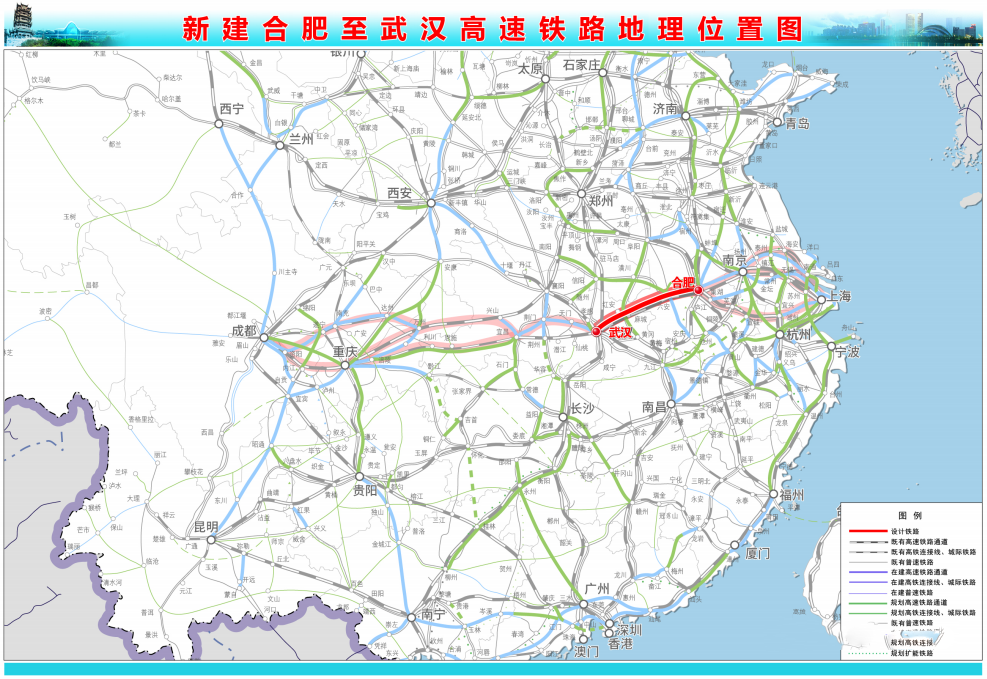 沪渝蓉高速铁路合肥至武汉段是国家高速铁路网“八纵八横”主骨架——沿江高标准高铁通道的重要组成部分,是武汉城市圈至长三角城市群、山东半岛及京津冀东南部地区的区际高铁通道。