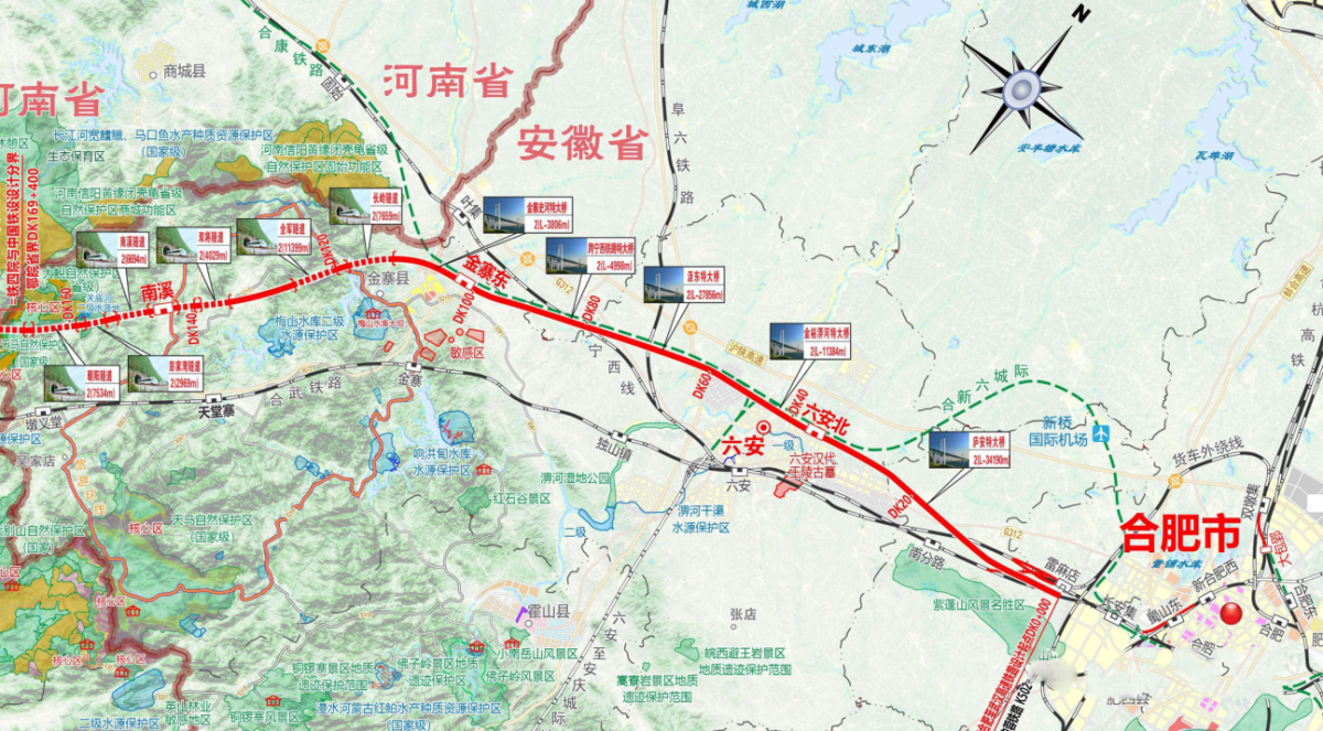 合肥枢纽相关工程包括:既有沪蓉铁路改建工程;新合肥西至合九线路所新建合武绕行三四线及相关工程;双墩集至大包郢线路所新建淮南三四线及相关工程。