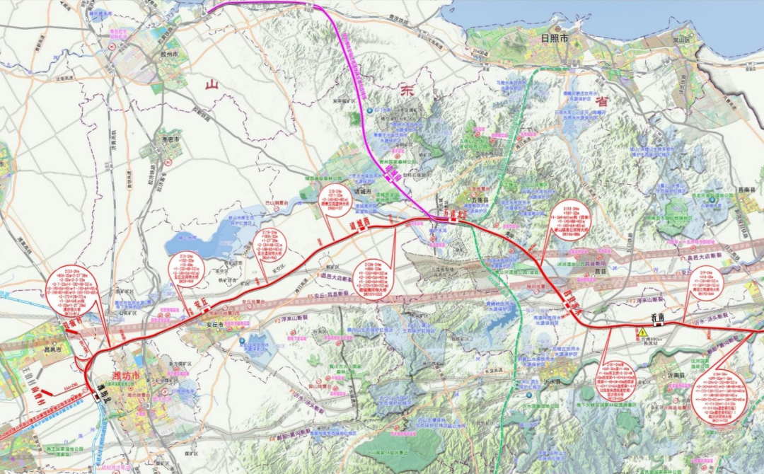潍宿高铁及本线至青岛连接线均为客运专线,双线,电力牵引,设计速度目标值350km/h。