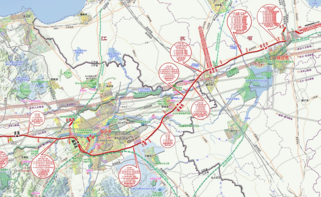 同步建设本线至济青高速、日兰高铁、潍莱高铁等联络线共约43.8公里。改建临沂北动车所,宿迁地区预留合肥至新沂铁路引入条件。