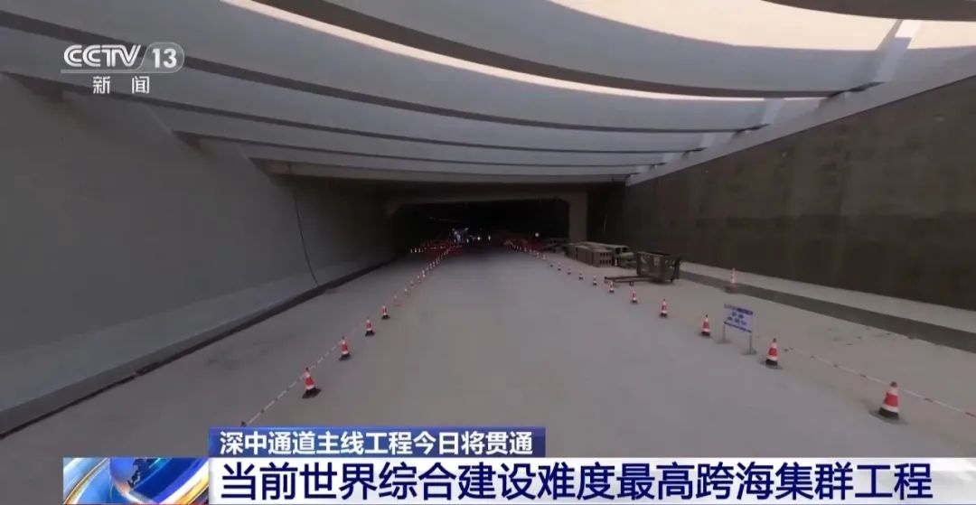 总台央视记者 李伟代:深中通道西人工岛,也是深中通道桥隧转换的关键的构造;从这里开始,深中通道开始了全长6845米的海底隧道部分,未来汽车将从这里驶向海平面之下,最深的地方将会在海平面之下39米的沉管隧道中行驶。