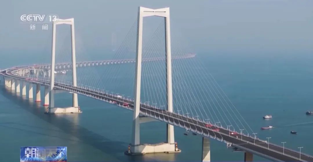总台央视记者 李伟代:车辆行驶在中山大桥上,从车窗看出去,两边海天一色,非常开阔。深中通道的桥梁部分像一条巨龙一样蜿蜒在伶仃洋上,这种S型的造型是基于水文地质、防洪、航空限高等多种因素的考虑,同时在驾驶的过程中也让大家更加的舒适和安全。