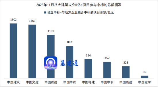 11 月份大项目中标单位主要为八大建筑央企以及地方国有、民营企业,其中,有八大建筑央企参与中标的项目总额就有约 7260 亿元,占总量比重达 67%,市场份额占比庞大。