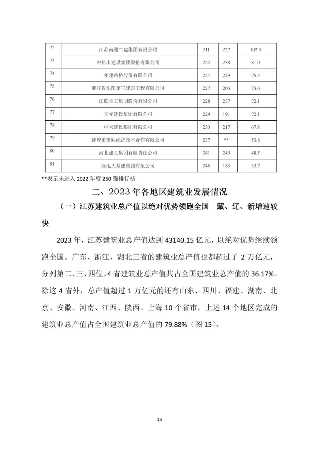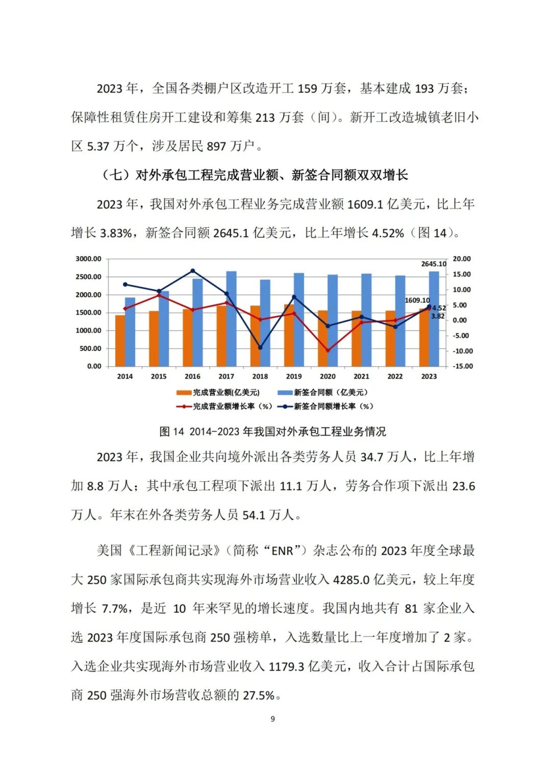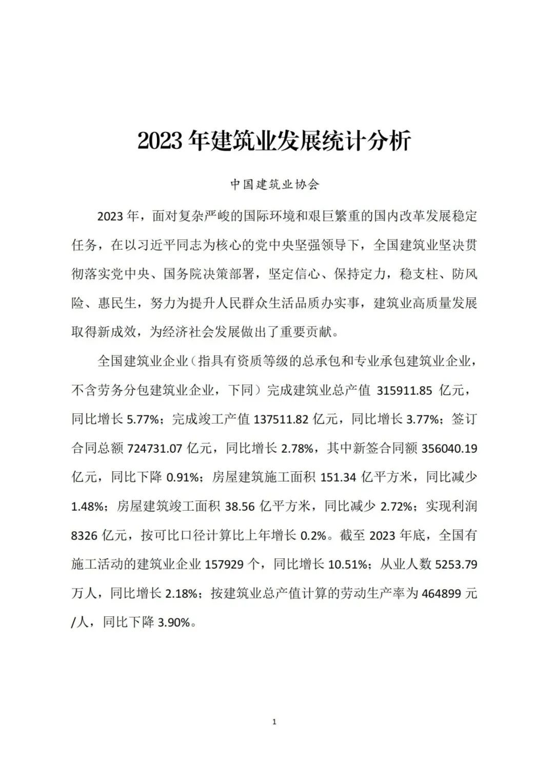 核心提示:2023年,面对复杂严峻的国际环境和艰巨繁重的国内改革发展稳定任务,在以习近平同志为核心的党中央坚强领导下,全国建筑业坚决贯彻落实党中央、国务院决策部署,坚定信心、保持定力,稳支柱、防风险、惠民生,努力为提升人民群众生活品质办实事,建筑业高质量发展取得新成效,为经济社会发展做出了重要贡献。