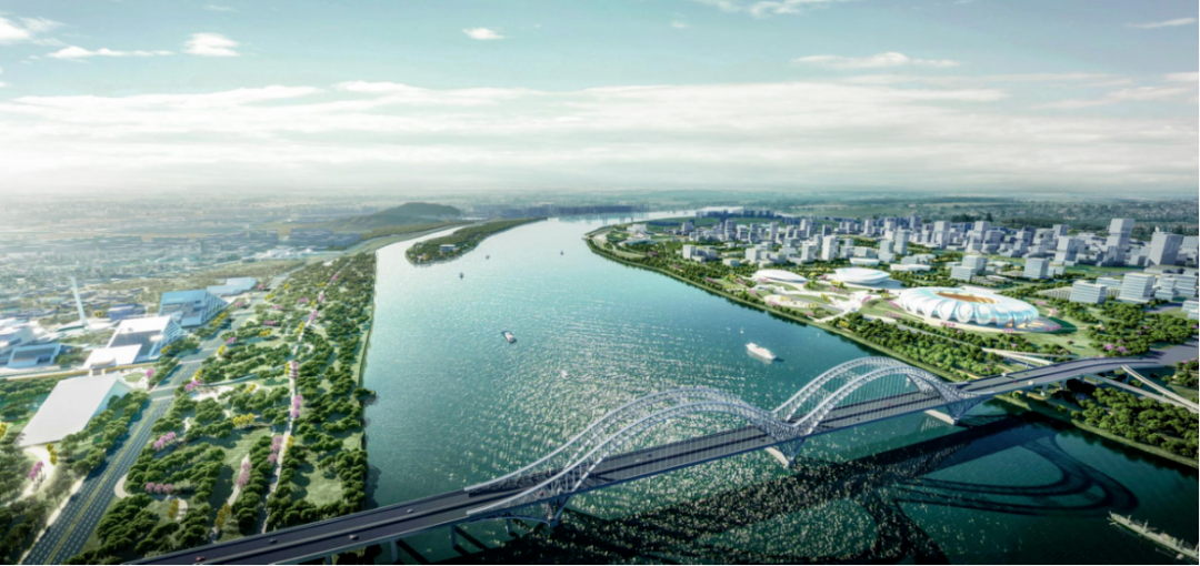 从项目效果图上发现,这块“南托北临江”地块的具体位置位于湘江科学城三馆对岸,西临湘江、北至强体路、东至京广铁路、南至万家丽路,总面积约3平方公里。