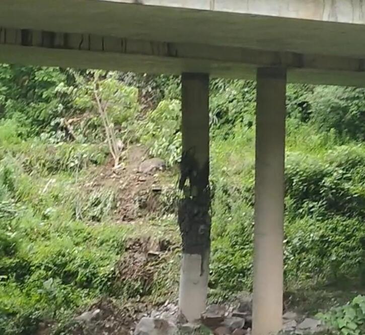 该网友告诉记者,21日早晨,他驾车准备经行G65包茂高速渝湘段的时候,发现该路段已实施管制,他只好改走319国道。当日上午10时许,他在国道上经过G65包茂高速渝湘段阿蓬江收费站附近时看到,一根高速公路桥墩受损严重,听说是被山上滚落的石头砸中所致。