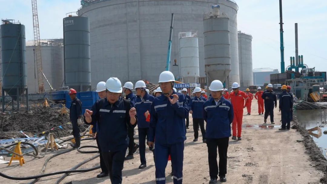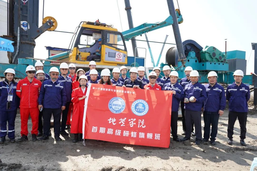 课程第二天,地基学院教务组带领学员赴寰球北京公司新天唐山LNG项目进行实地学习,在本教学环节中,重点参观学习了智能数字信息化劲性复合桩核心技术施工现场。