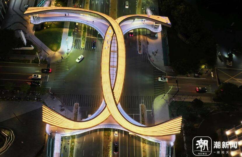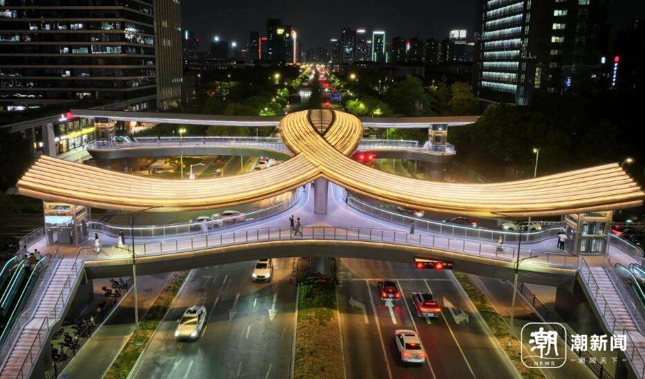 8月12日,杭州滨江区滨康路聚才路天桥开通试运行。天桥整体造型取自杭州丝绸,从空中俯瞰,宛如两条丝带交错相织,隐喻高新企业间的交流合作。