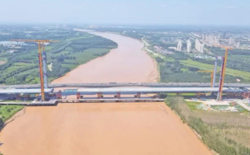 8月11日,在京台高速公路齐河至济南段改扩建工程黄河特大桥施工现场,大桥主塔建设及钢箱梁顶推作业有序进行,为下一步高质量推进主桥斜拉索架设施工奠定了坚实基础。