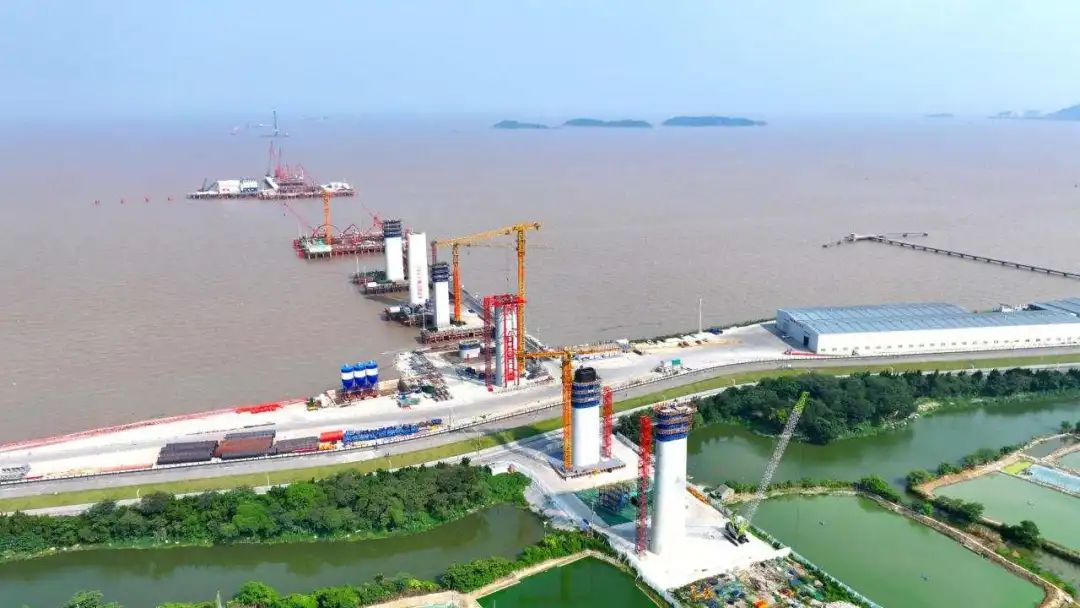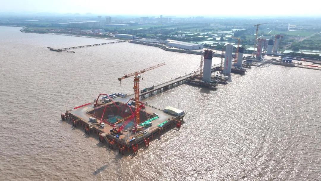 此次浇筑的北航道桥8号主塔塔座,也是杭州湾跨海铁路大桥**开始施工的主塔。