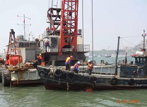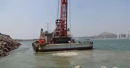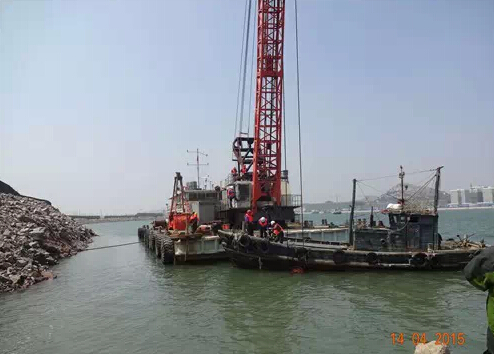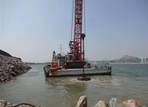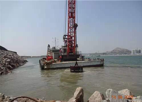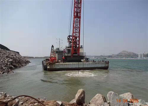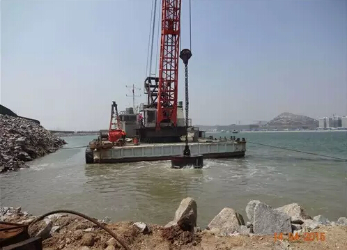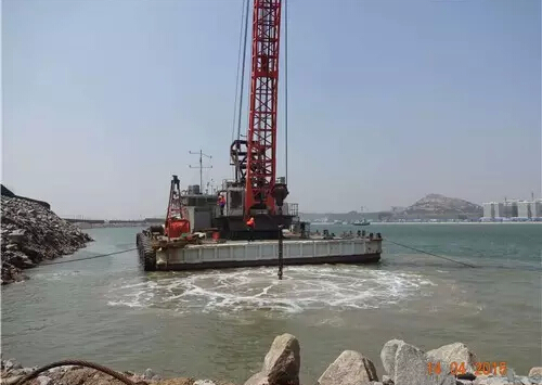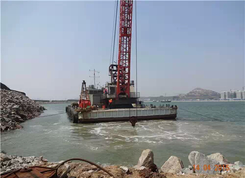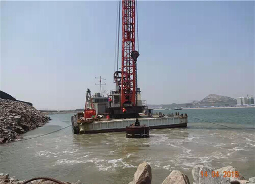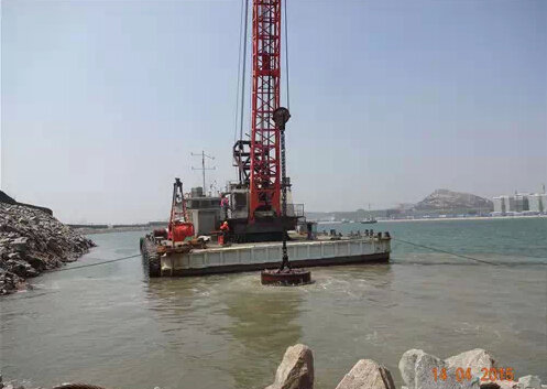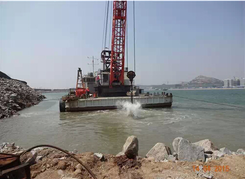 人工填海造陆周边岸壁工程水下强夯试夯现场