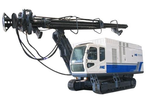 CS225EH/14型履带式露天潜孔钻机性能先进可靠、作业效率高,可穿凿露天边坡预裂孔、根底孔以及台阶前缘垮落孔等,不需其他钻机来辅助配套,广泛应用于大中型露天矿山、大中型水利工程、军事工程等采矿与工程施工。