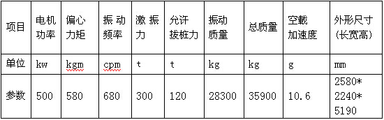 6)该机偏心力矩大、振动冲量大、克服端阻力能力强大,可用于大型海上挤密砂桩和沉拔大直径PHC混凝土管桩施工。
