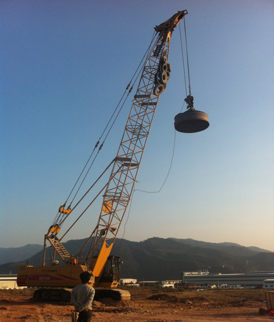 CHUY3600型履带式强夯机是一款集强夯、起重功能于一身的多功能强夯机。可应用于夯实地基的基础施工,包括处理碎石土、沙土、杂填土、低饱和度粉土、黏性土地基等。强夯工程范围涉及到工业与民用建筑,公路铁路路基建设、码头、机场、电站和人工岛等,还可以从事施工现场的吊装作业与设备安装工作。