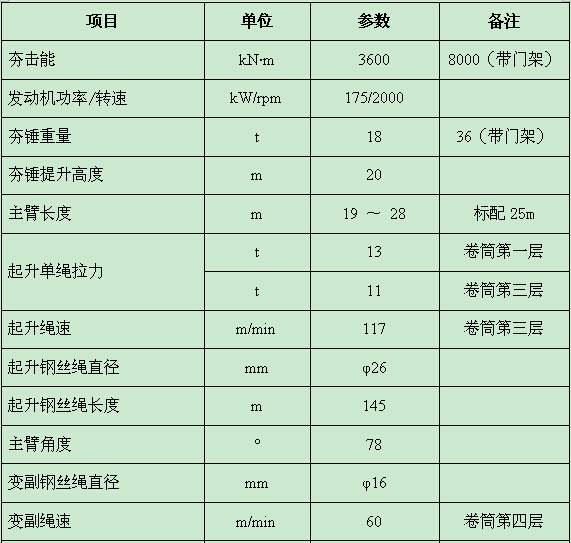 CHUY3600型履带式强夯机的技术参数如表2.1所示。