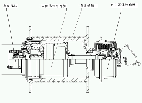 采用性能可靠、维护方便的内胀外抱式卷扬机,具有空钩下放功能,工作效率高。