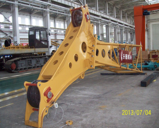 采用全液压驱动,轮距加大,履带板接地面积增加,接地比压小,施工可靠性高,大幅度增加强夯工况稳定性;臂架采用高强度钢管焊接,前伸式鹅头结构更适合于强夯作业工况。