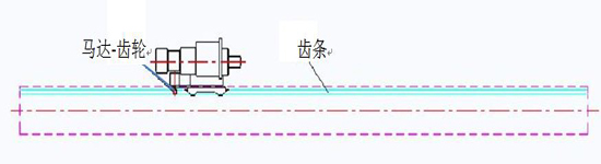c. “齿轮-齿条”进给机构。如图4所示,低速大扭矩马达固定在动力头滑架上,并通过齿轮与固定在钻桅上的齿条啮合,马达正转则动力头前进,马达反转则动力头后退,且进给力与起拔力相同。该方案优点是行程不受限制,进给力和起拔力较大,但成本较高。