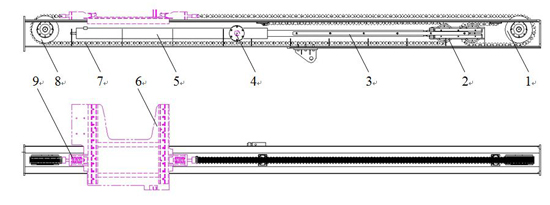 5—油缸;6—动力头小车;7—链条;9—张紧装置