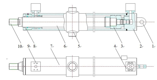 6—缸杆;7—缸筒;8—油缸前端盖;10—螺柱连接头