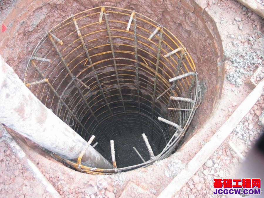 2、灌注桩。指在地面预定桩位上开孔,一般截面为圆形,成孔后在孔内放入钢筋笼,并灌注混凝土而成的桩基。