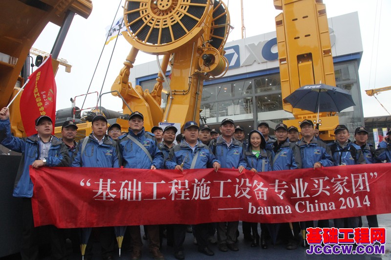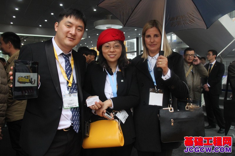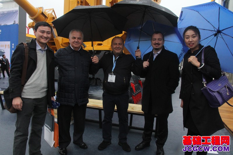 淅淅沥沥的小雨挡不住土耳其朋友参观2014中国国际工程机械、建材机械、工程车辆及设备博览会的热情,在徐工XG600D连续墙前留念