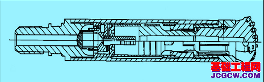 通过不断改变进排气方向,就可实现活塞在气缸内的不断往复运动,从而也能不断反复冲击钻头,这就是气功冲击器工作的最简单原理和过程。造成控制反复改变进排压缩空气方向的机构叫配气机构,配气机构是冲击器的核心部分,当压缩空气进入前气室时推动活塞上行,当压缩空气进入后气室时推动活塞下行。活塞是冲击器的一个能量转换装置,它依靠活塞运动将压缩空气的能量转换为冲击的机械能,一般是以冲击动态表示,冲击功的大小决定于活塞的重量及运动速度。