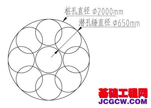 另外针对大直径灌注桩入岩,国内外暂无大直径冲击器,可以采取下列方法施工(如下图):