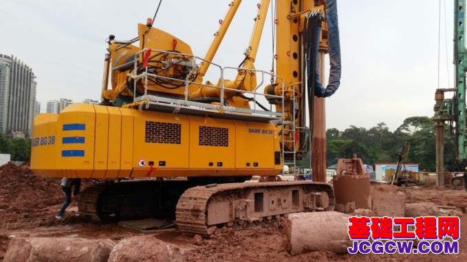 2014年1月份,一台已运行6500小时,成功完成过多个嵌岩项目的宝峨BG 25旋挖钻机抵达工地现场,经过设备调试、磨合之后,不到15个小时,就完成一根直径1000mm,入微风化花岗岩深度8米的桩。