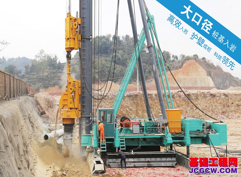 所谓大,一方面是大口径,这便有效解决了大口径,全套管的施工难题,可用于复杂地层的入岩施工。另一方面是大扭矩,SHX双回旋凿岩潜孔钻机输出扭矩大,目前最大扭矩可达52T·m。可有效解决目前国内CFG长螺旋钻机在特殊地质施工时遇到的扭矩不足问题。