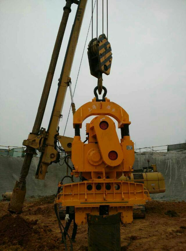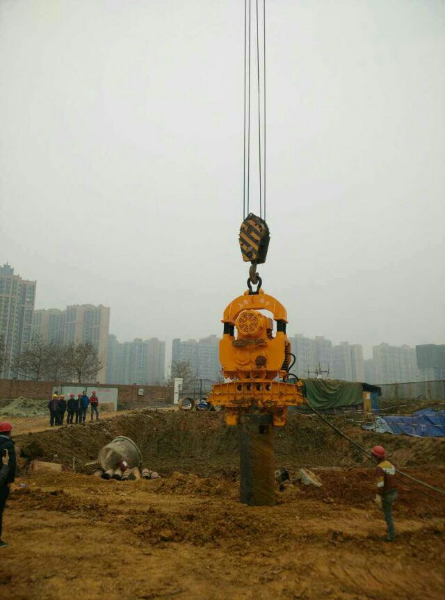 本次施工现场地质条件复杂,工程难度较大。成桩要求管径800mm,入土深度15米,由于蜀地地层坚硬,沉桩实属不易,李白曾有诗文说:蜀道难,难于上青天 ,描述的就是当地的地质情况,想一想筑路都很困难,何况是打桩入地呢? 但振中员工们不畏艰难,成竹在胸,因为DZP系列振动锤是振中的拳头产品,科技含量高,工作性能超群,在此前难度较大的施工中已经大显身手,屡建奇功 。于是,在现场施工人员的积极配合下,按照即定方案,振动锤启动了。