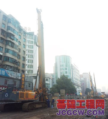 目前正在进行桩基础施工,桩基础为成孔深度20米、直径1.5米的咬合桩,现场地质条件及其复杂,上层岩石硬度很大,下层有溶洞易塌孔,需要加护筒。由于工期较紧,现场共有15台旋挖钻机同时施工,其中10台徐工旋挖钻机以其入岩能力强、成孔效率极高的优势获得了项目部的一致好评。