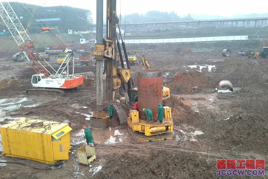 由于永川东站站前综合枢纽工程项目地质结构特殊(回填层、淤泥层、流沙层、红砂岩层),传统的泥浆护壁技术在孔内不能有效存留护壁,孔壁容易垮塌、沉渣不能得到有效控制,无法有效浇筑桩基和保障桩身质量,这样的特殊地层对很多施工单位来说都是一个头痛的难题,并且因为设计要求,孔径达到2米,对施工更是难上加难。而在项目现场,施工单位先用旋挖钻机动力头驱动护筒,校正护筒垂直度,然后在护筒自重力、夹持机构回转力及压力的复合作用下,先将第一节护筒沉入土中,然后在上边连接第二节护筒。随后用钻头取土,在钻至设计要求孔深后,放入钢筋笼,进行混凝土浇注,最后起拔护筒,通过使用搓管机进行全跟进护筒施工工艺,完全克服了这一施工难题。同时,孔径达2米的全跟进护筒施工在国内也尚属首列。