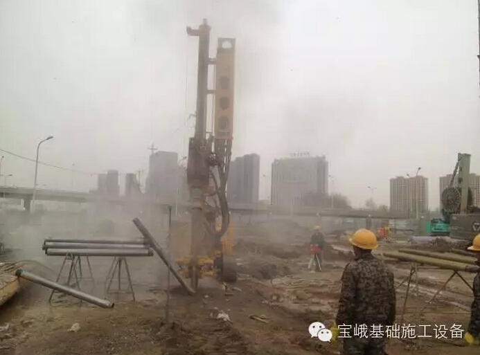 上图为宝峨KR 909-1钻机在成都进行168mm直径、深度为32米的全套管施工。
