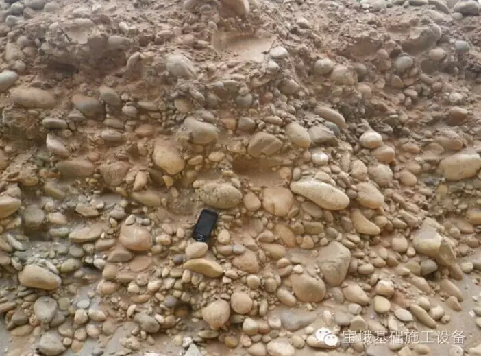 上图为宝峨KR 909-1钻机在成都钻进的致密砂卵石地层。