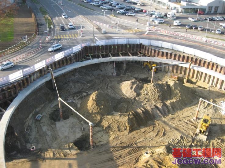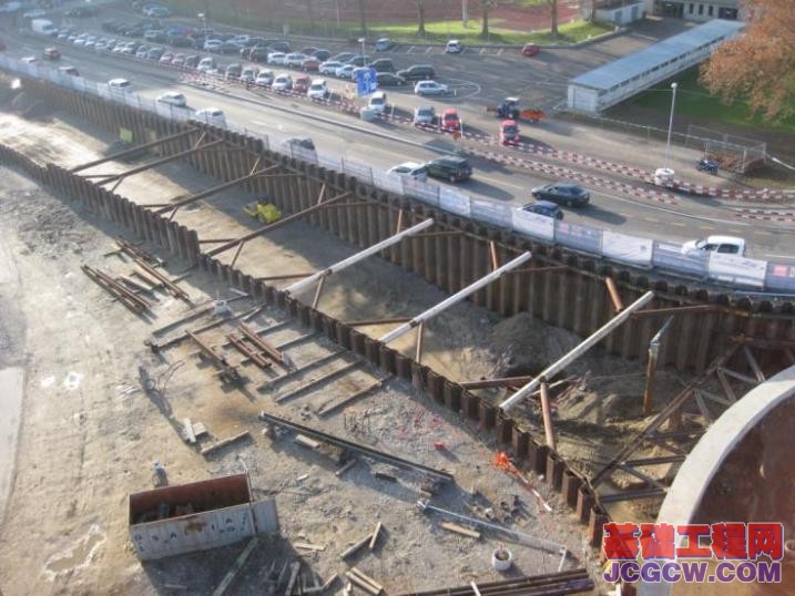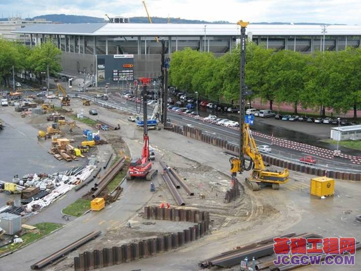 上图为宝峨RTG钻机在瑞士伯尔尼隧道工地,施工完成的钢板桩墙开挖后的照片。