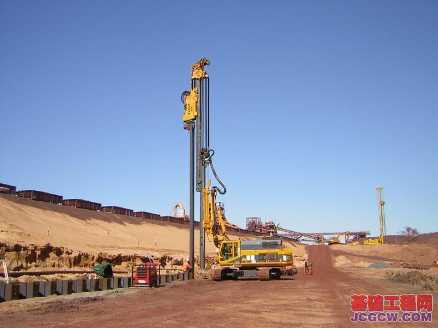 上图为宝峨RG 16T多功能钻机在澳大利亚港口进行钢板桩施工