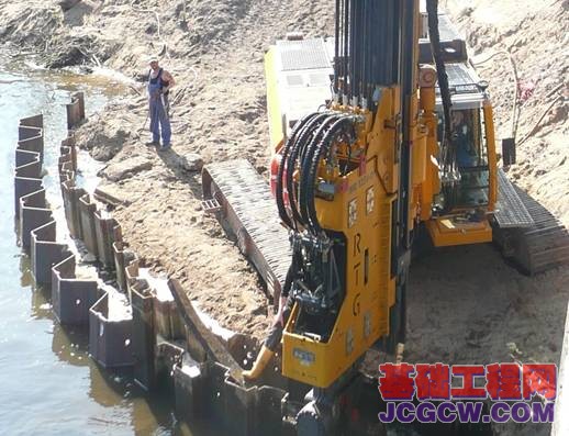 上图为采用RG 19T钻机施工,嵌入岩石1-1.5米的钢板桩