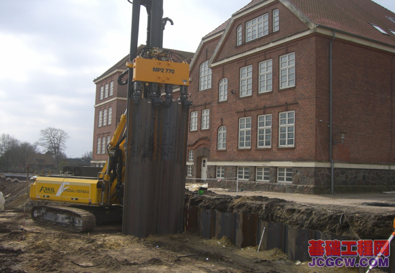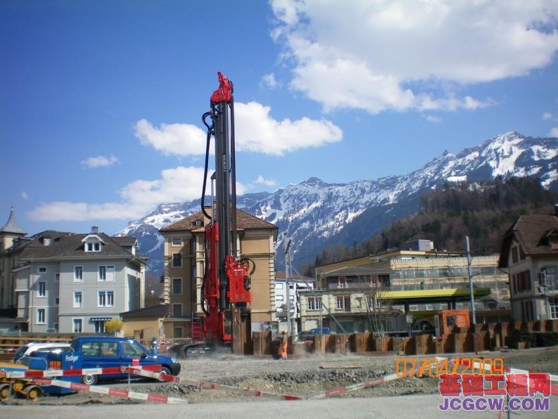 上图为宝峨RG 21T, RG 20S 和 RG25S在瑞士首都伯尔尼施工钢板桩的现场。钢板桩维护体系具有施工速度快、没有钢筋混凝土消耗、钢板桩循环使用、施工作业面小、应用于浅基坑综合成本较低等特点,在发达国家已有广泛应用。