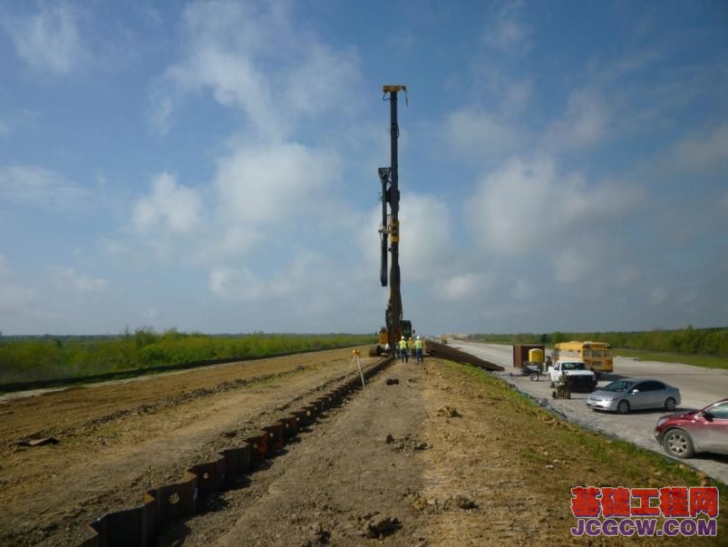 在美国新奥尔良进行堤防治理的宝峨RTG钻机,钢板桩防渗墙总长度12公里。