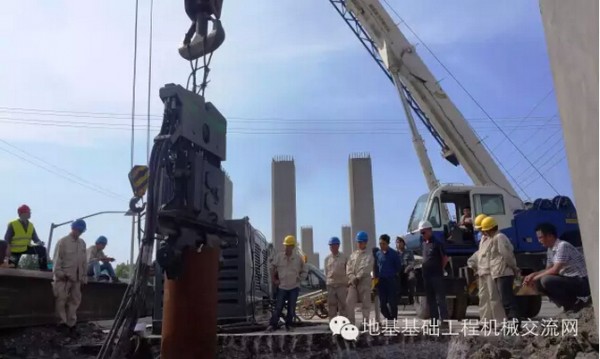 双方技术人员最终决定选用荷兰ICE20RF免共振液压振动锤进行试验。供试桩为24米长管桩和H型钢桩,壁厚20mm,重约10吨。
