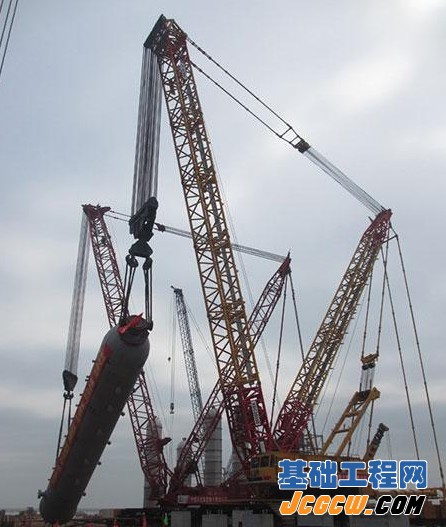 由于徐工2000吨履带起重机在湖北武汉、广东茂名、福建泉州1200万吨炼油项目以及宁夏50万吨/年甲醇制烯烃项目中次次表现卓越,得到了施工方的认可。此次吊装徐工XGC28000履带起重机继续担当吊装的主力,经过多名工程师反复讨论、勘查、论证,采用双机抬吊递送的吊装方法。徐工2000吨履带起重机该工况下最大额定起重量为1577吨,意味着此次吊装负载率高达84.8%,此次与马尼托瓦克M21000履带起重机辅助配合溜尾,协同完成此次吊装。