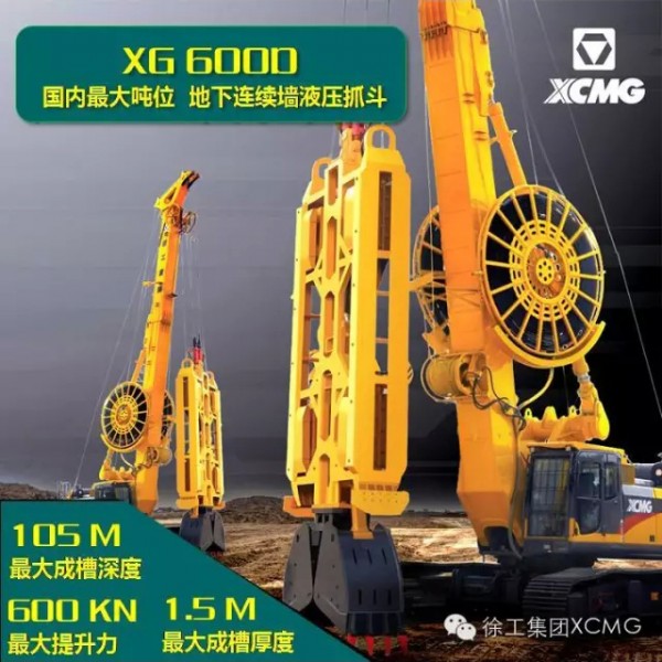 XG600D是徐工自主研发的国内最大吨位连续墙液压抓斗,也是国内成孔最深的连续墙产品,广泛应用于堤坝防渗、船坞围堰、轨道交通、城市基础建设等领域,大家赶快寻找一下身边有没有这个基础施工的明星产品吧。