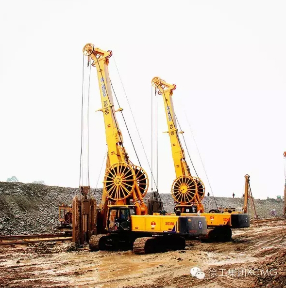 徐工XG600D兄弟在乐山大渡河水电站施工现场并肩作战