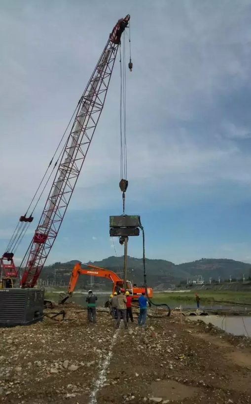 大粒径高密度卵石层钢板桩围堰施工416L液压振动锤展雄风