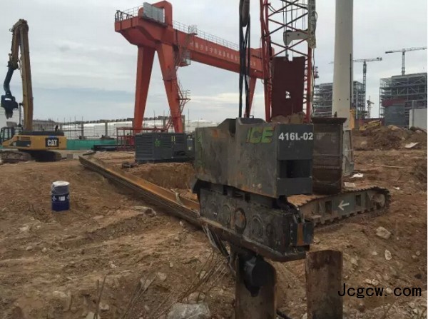 钦州热电厂二期扩建工程由中交一航局五公司来承建。ICE416L液压振动锤负责将1500多根4号和6号长度为15米的 拉森钢板桩打入地下,待施工完成后再拔出。