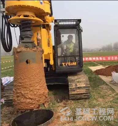 目前在施工的G38基础施工完成。钻孔直径800mm,深度11m,采用泥浆护壁。钻孔高效,将施工时间缩小近2倍。国家电网的施工人员和工程技术人员对此赞不绝口。