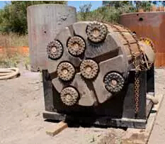 这套名为“雷神”的48 英寸集束式潜孔锤随后开始在抗压强度为170 MPa(25,000 psi)的花岗岩中钻孔。